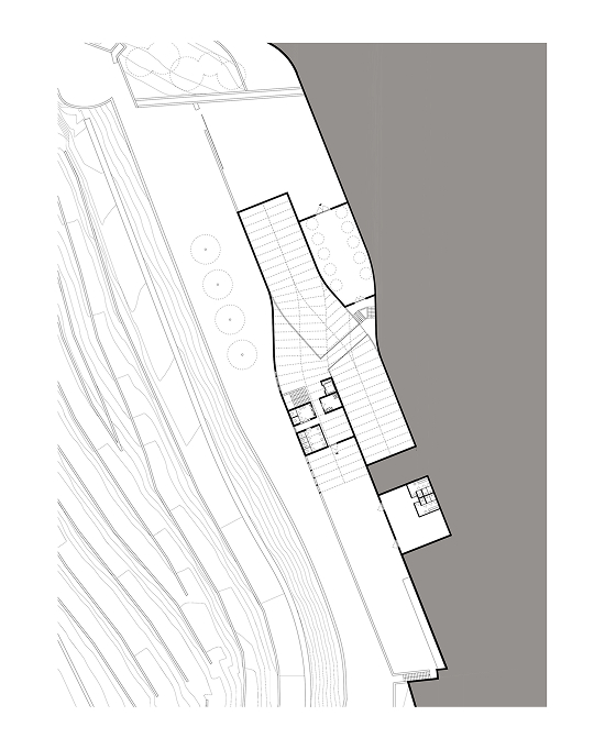 El acceso principal de la bodega alberga un centro de visitantes con área de recepción y tienda de vinos, que conduce a una sala de reuniones con cerramiento completamente vidriado y a un espacio de degustación ubicado en una amplia galería con balcón. Desde allí se domina tanto el área de crianza del vino, situada en la nave central, como el paisaje circundante. Estos espacios se vinculan directamente con el viñedo y con una pequeña capilla histórica de piedra, a través de una gran terraza con vistas al río Duero. El conjunto está preparado para albergar eventos vinculados a un enoturismo de carácter prestigioso, promoviendo la bodega y la región, y celebrando el encuentro entre naturaleza y arquitectura.