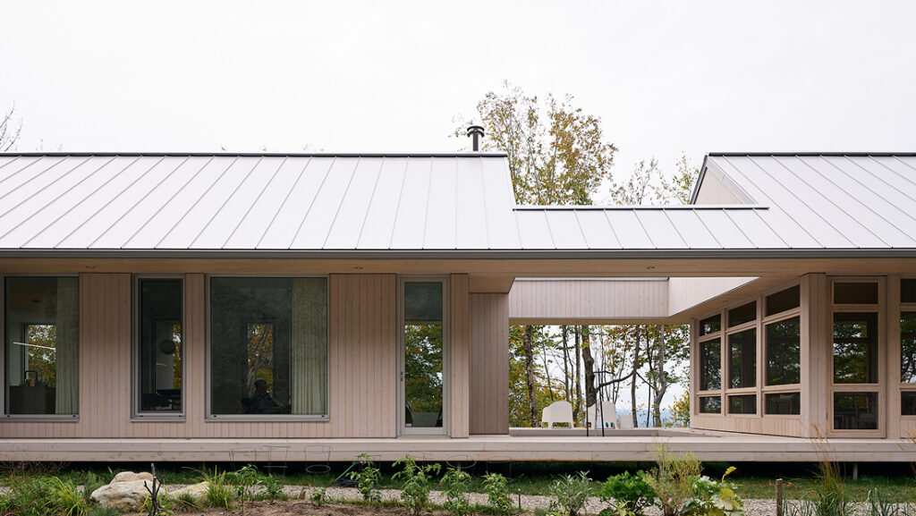 Las carpinterías de suelo a techo permiten la total apertura hacia el exterior. Unos abedules y una cortina ejercen el control solar de manera silenciosa, al vaivén del viento.