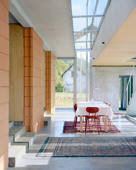 Los materiales y superficies son robustos y hospitalarios, reflejando la resiliencia y el potencial de las mujeres que habitan la casa. La generosidad de los espacios compartidos replantea la noción de confort y propone un modelo alternativo para la vivienda colectiva. La posibilidad de cultivar la parcela agrícola contigua fortalece la autonomía de las residentes, que permanecen el tiempo que desean y cuentan con el acompañamiento de una cuidadora capacitada. Desde allí, la casa se convierte en una comunidad viva, en constante transformación.