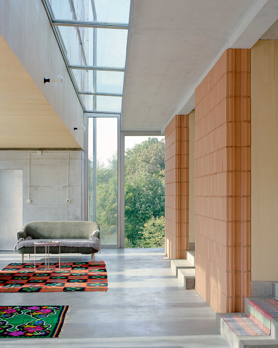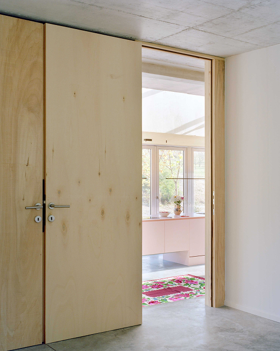 En diálogo con TEN, el paisajista Daniel Ganz integró cuidadosamente la casa al terreno mediante la plantación de árboles, el acondicionamiento del paisaje y el diseño de un huerto productivo. La artista Shirana Shahbazi trabajó con color y materialidad para transformar la fachada y el interior en una composición visual dinámica, elaborada en parte en un taller local de pintura automotriz convertido temporalmente en estudio. La gran fachada, compuesta por veinte puertas que se abren hacia el camino, vuelve la casa accesible y visible; cuando están completamente abiertas, crean un umbral de veinticinco metros que incorpora el paisaje al interior.