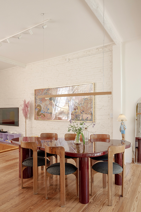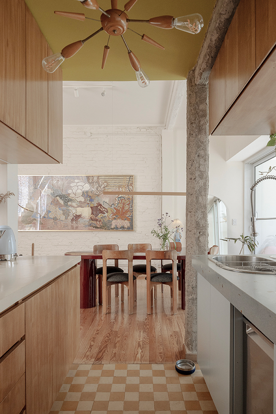 Las distintas alturas del hogar propusieron múltiples experiencias: descender al conversation pit, reunirse en la mesa del comedor o compartir en la barra de la cocina. El proyecto exploró así cómo el habitar pudo convertirse en un acto de placer, identidad y encuentro.