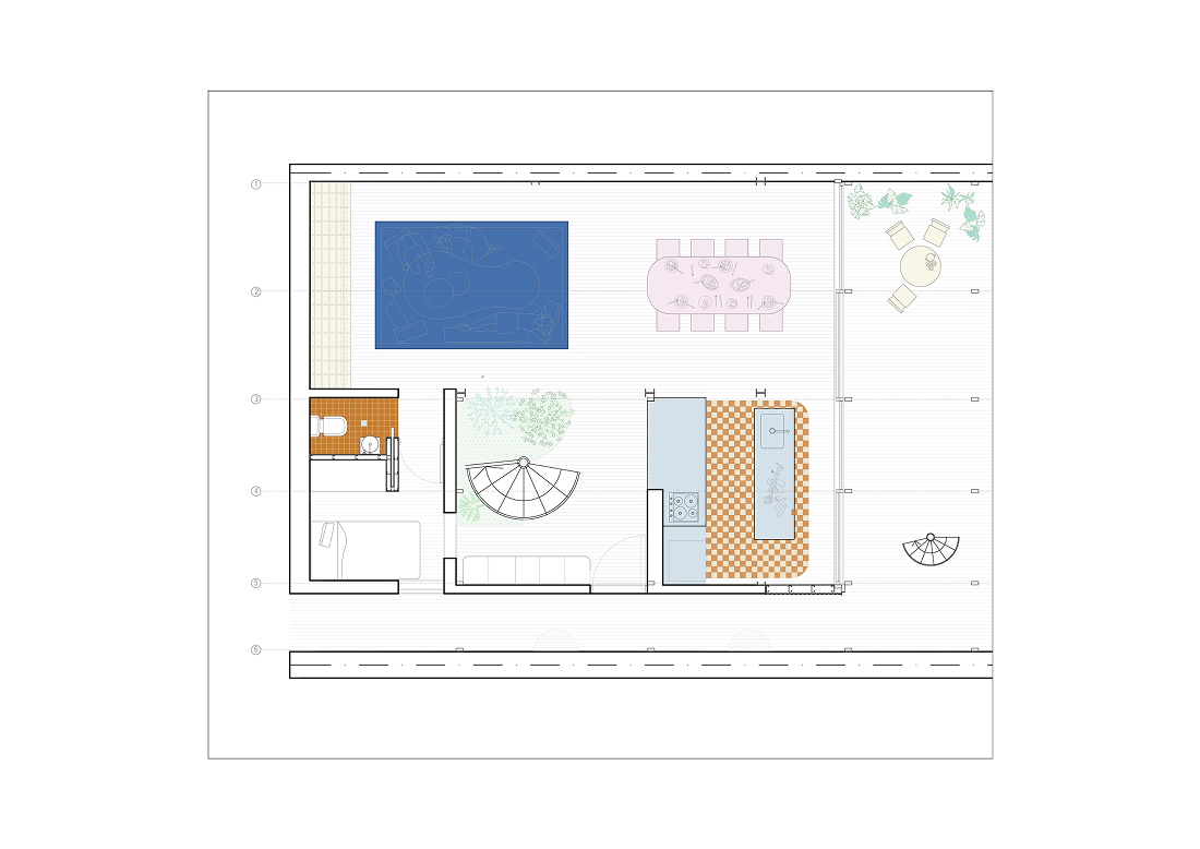 Durante el proceso de diseño, la propietaria presentó la obra A Bigger Splash de David Hockney. A partir de ella se construyó una paleta cromática específica para cada espacio y situación. El proyecto entendió el color no como una intervención superficial, sino como una lógica espacial que acompañó la experiencia del habitar.