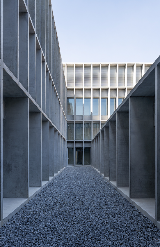 La imagen del edificio se conforma mediante una estructura vista de hormigón in situ, interior y exterior, capaz de organizar el programa y formular la imagen.