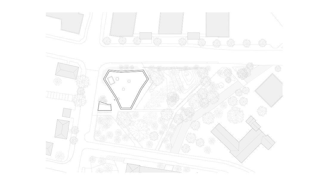 Por su forma y su implantación, el KinderKunstLabor se convierte en un nuevo hito urbano en el recorrido que conecta el centro histórico barroco de St. Pölten con el distrito cultural. El edificio se emplaza en el extremo noroeste del Altoona Park, integrándose con la vegetación existente, entre la que se destaca una gran secuoya. El parque incorpora esculturas y dispositivos lúdicos de artistas internacionales, zonas de agua y espacios de juego, consolidándose como un ámbito recreativo y cultural abierto a visitantes de todas las edades.