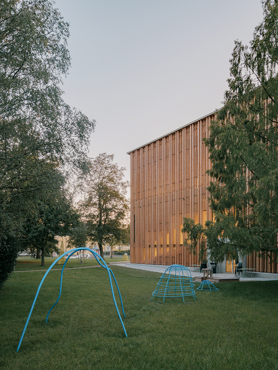 Inaugurado en 2024, el KinderKunstLabor se consolidó rápidamente como una institución cultural dedicada a niños y jóvenes, reconocida por su tipología inusual y por un proceso de desarrollo profundamente participativo, que ha despertado interés a nivel internacional. El edificio se ubica en St. Pölten, capital de la Baja Austria, una ciudad de poco menos de 55.000 habitantes situada a unos 60 kilómetros al oeste de Viena.