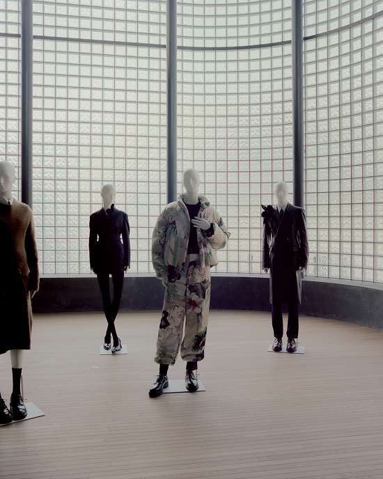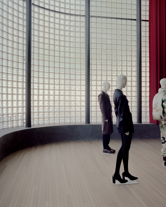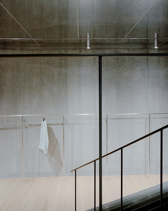 La arquitectura, resuelta a partir de pocos materiales cuidadosamente seleccionados y utilizados con precisión, ofrece un marco sobrio para las colecciones sartoriales. El hormigón visto, ejecutado con encofrados de OSB y tratado con una veladura mineral, pone en valor la pátina y la textura del material, evocando un tejido entrelazado cuya estructura y carácter se transforman con el uso. La fachada, conformada por bloques de vidrio, permite el ingreso de una luz difusa durante el día que, al caer la noche, se convierte en una iluminación suave hacia el exterior. La luz trasciende la percepción visual para conectar el espacio con la sensibilidad humana y transmitir de manera inmediata la dimensión emocional de la arquitectura.