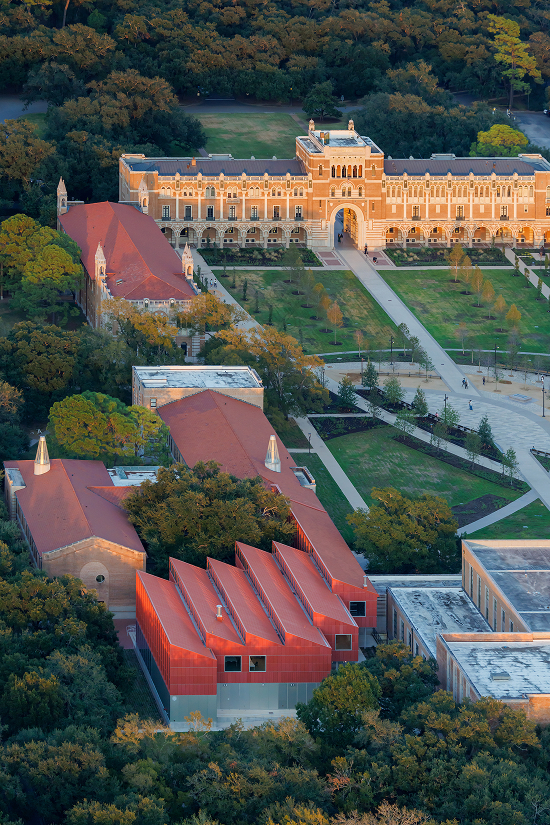 La Escuela de Arquitectura de la Universidad Rice, uno de los departamentos fundacionales de la institución, ocupa un sitio privilegiado en el cuadrángulo histórico del campus. A lo largo de los años sumó ampliaciones –incluida la icónica intervención de James Stirling en los años ochenta– que, junto con Cannady Hall, conforman un patio común que funciona como corazón de la escuela, escenario de encuentros y festejos de graduación. Con una escala íntima –solo ciento veinte estudiantes entre grado y posgrado– la escuela busca ampliar su oferta pedagógica y su visibilidad con un proyecto a la altura de sus aspiraciones.